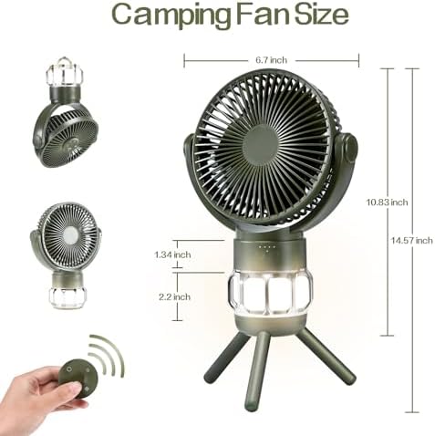 Be the first to review “Camping Fan For Tent, 32H Cooling LED Fan Lantern Remote Control With Stand, 3 Speed Settings, 3 Light Modes, 10000mAh Battery, 240°Oscillating, Quiet Vintage Fan For Hurricane Season”
