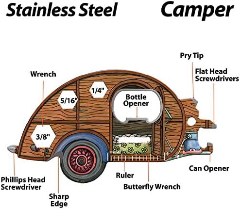☆【Unique 11-in-1 Camper Multi-tool】 Our camping multi tool for men contains incredible 11 tools. Including phillips head screwdriver, butterfly wrench, ruler, bottle opener,can opener, etc.
