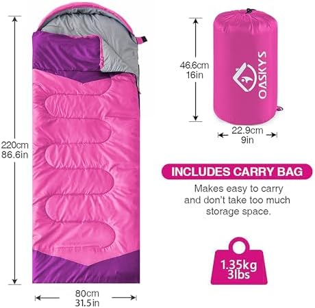 SIZE&EASY TO CARRY:(190 + 30)cm x 80 cm.Can be wiped clean making it versatile and convenient. Each sleeping bag comes with a compression sack with straps, allowing for super convenient storage and easy carry maneuverability