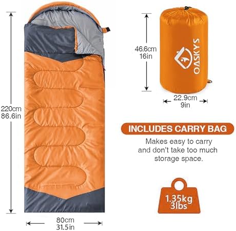 Camping Sleeping Bag – 3 Season Warm & Cool Weather – Summer Spring Fall Lightweight Waterproof for Adults Kids – Camping Gear Equipment, Traveling, and Outdoors