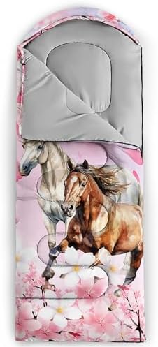 【Fits For 3 Seasons】: Size – 31 by 90 inches (W x D). Our Horse sleeping bag can be used in 3 seasons with a design temperature of 32℉-77℉(0℃-25℃). These Sleeping bags also have a weather resistant waterproof design to keep you warm and prevent you from any dampness.
