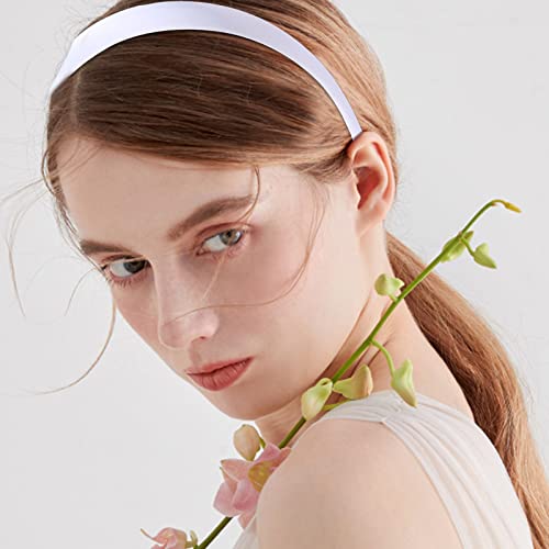 Satin Covered Hair Band for women’s hair, a pack of 33 0.8in width girls White color satin headbands that come in a package.