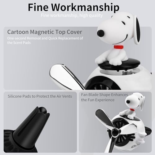 Car Air Freshener – Cartoon Cute Style Car Diffuser Car Air Fresheners Vent Clips Automative Rotating Propeller Air Outlet Vent Fresheners,Aromatherapy Car Accessories (Pilot Black-White Dog)