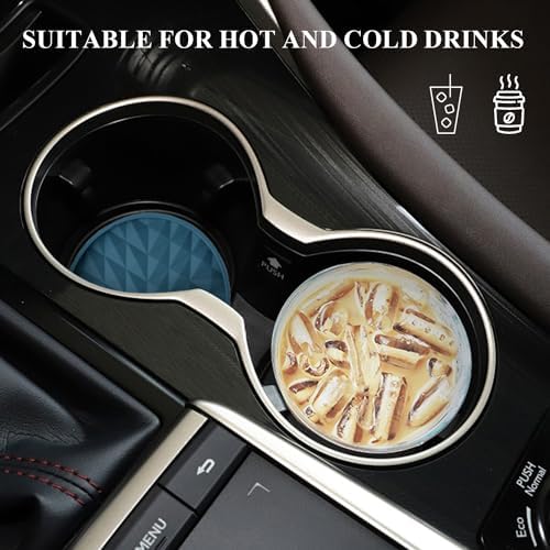 Car Coasters Silicone [4 Pack] 2.75in Universal Mats Non-Slip, Embedded Car Interior Accessories, Car Cup Holders Insert Coasters Decor,Dark Blue
