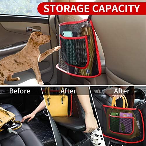 8sanlione Car Mesh Organizer designed with extra mesh Pocket bag helps to storage your phone handbag tablet purse magazine umbrella… and keep them in reachable place. our car storage purse holder organizer can cover the space between two seats of the car extra space to storage.