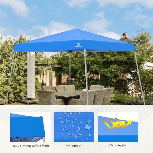 CBFULLRES10x10 FT Pop Up Canopy Tent, Outdoor Instant Tent with Slant Legs, Portable Gazebo Shelter for Patio, Deck, Garden, Beach, with Carry Bag, Blue