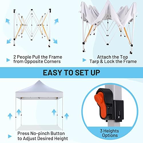 [Big Shade Area]: 10x10FT of shade, Quick Locking Mechanism to Triple Height Profiles, Reach Out to Photos and Videos Description on Page for More Information.