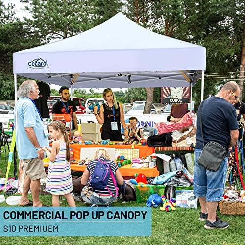 Cecarol S10 10×10 Patio Pop Up Canopy Tent, Heavy Duty Instant Canopy with Durable Roller Bag and Premium Thick Material for Outdoor, Garden, Sport Events, Lure Fishing Uses, Pickup Carrying, White