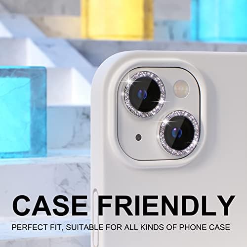 Personalized Decoration: Made of high-quality aviation aluminum metal ring and 9H tempered glass and inlaid with bling rhinestones to give your iPhone 14/14 Plus camera lens a diamond gorgeous appearance, shining in the sun, very eye-catching and complimentary.