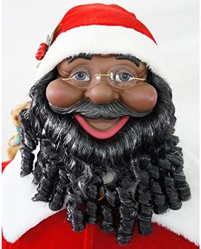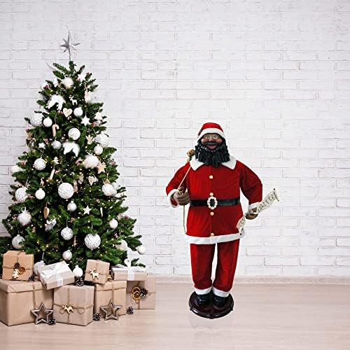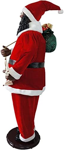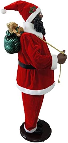 LIFE-SIZE: Standing 58 inches tall, African American Santa carries his Naughty & Nice List and a toy sack filled with holiday goodies over his back. Place him in the foyer, near the fireplace, or next to the Christmas tree and watch as everyone starts dancing.