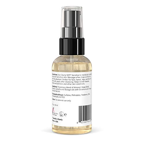 Clearly SOFT Gentle Face and Body Oil for Sensitive Skin | Hydrate, Moisturize, Soothe Dry Skin | Natural and Organic Ingredients for Smooth Soft Skin | Made in USA (2 Oz)