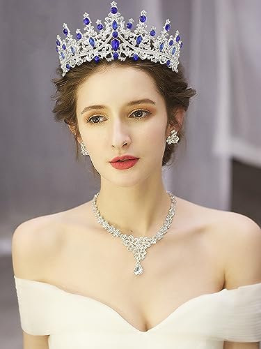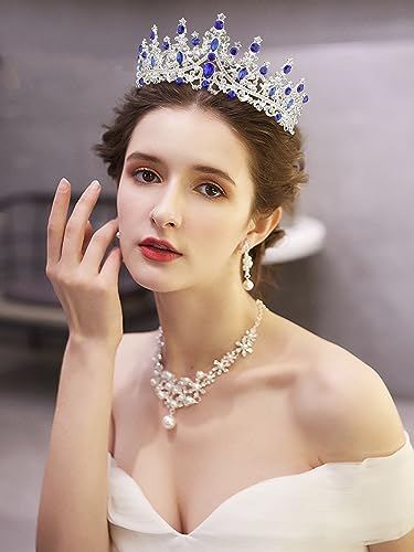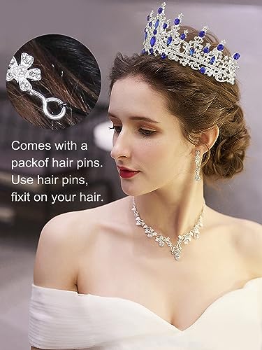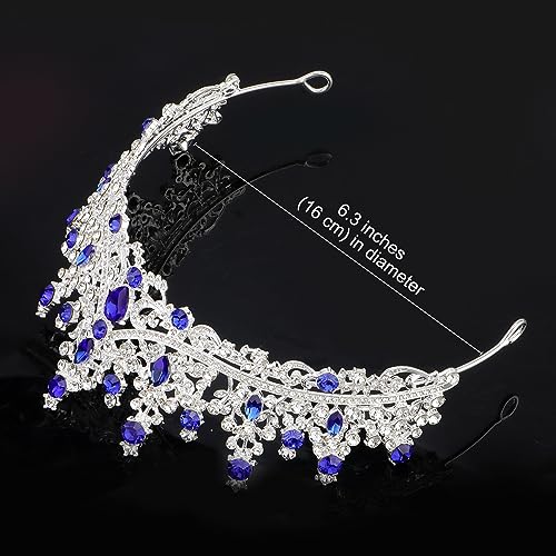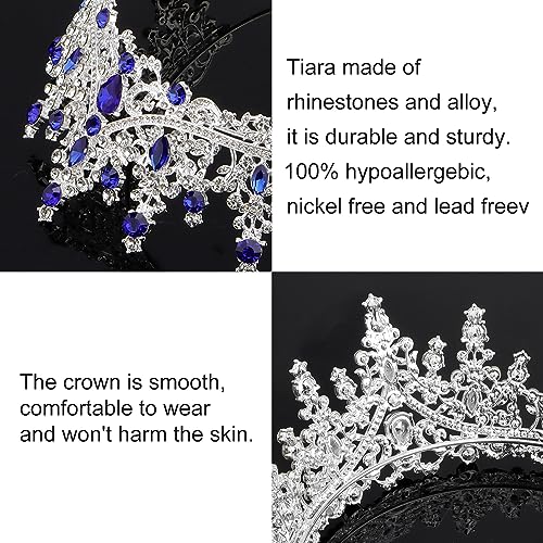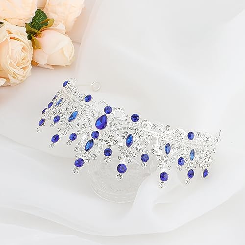 COCIDE Blue Crystal Tiaras and Crowns for Women Princess Queen Crowns for Women Rhinestone Tiaras for Girls Bride Wedding Hair Accessories for Bridal Birthday Party Prom Halloween Cosplay Christmas