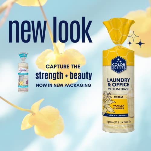 Color Scents – Medium Trash Bags, Twist Tie – 8 Gallon Trash Bags, 40 Count – Laundry & Office Trash Bag, Scented Garbage Bag, Cream Bag in Vanilla Flower Scent (1 Pack of 40 Count)