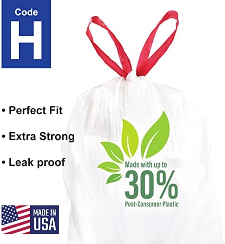 Compatible with Code H – 200 Count (4 Rolls) Durable Custom Fit Plastic Trash Bags w/Drawstring – 30-35 Liter/ 8-9 Gallon Trash Cans – Heavy Duty Garbage Bag – Made in USA