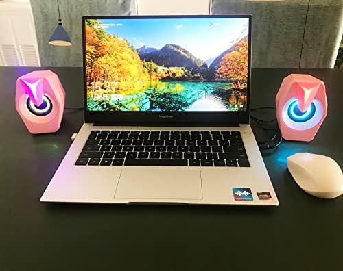 Computer Speaker RGB Pink Game led Speaker for PC 2.0 Wired USB Powered Stereo Volume Control Dual Channel Multimedia AUX 3.5mm for Laptop Desktop Display, 6W
