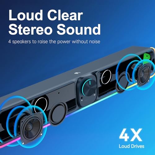 Computer Speakers,Bluetooth 5.1 RGB Gaming Sound Bar Speakers for PC, Desktop Monitor, Laptop,TV,Tablets, Portable Wireless Soundbar with Rhythmic Lighting and Bass