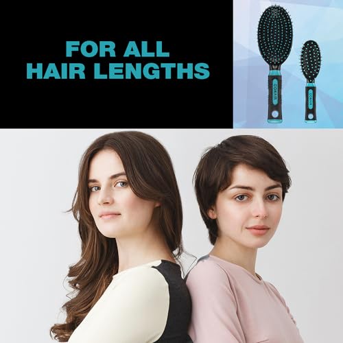 This dual set of hairbrushes features both a full-size and mid-size nylon bristle cushion hairbrush, perfect for keeping one at home and taking the other with you for on-the-go for everyday brushing.