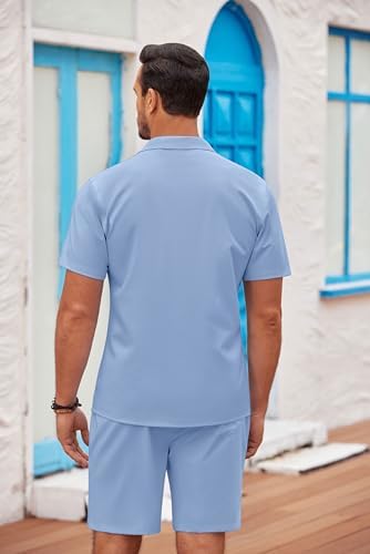 COOFANDY Men’s 2 Pieces Shirt Sets Casual Short Sleeve Button Down Shirt and Short Sets Summer Beach Outfits