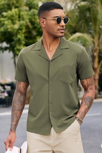 COOFANDY Men’s Casual Button Down Shirts Short Sleeve Cuban Collar Shirt Summer Beach Wear