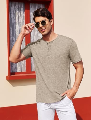 COOFANDY Men’s Henley Shirts Short Sleeve Casual Basic Tee Summer Button Henley Soild T Shirts