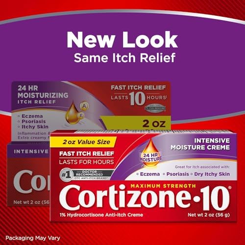 Stop the itchsanity! Cortizone-10 Maximum Strength Intensive Moisture Anti-Itch Cream relieves itch fast and lasts for hours. Formulated with maximum-strength hydrocortisone, this anti-itch cream nourishes and hydrates skin while relieving itch with seven moisturizers and three vitamins. Use it on minor skin irritations, rashes, insect bites, and poison ivy and sumac. Cortizone-10 Intensive Moisture Cream provides 24-hour moisture in a fragrance-free and dye-free formula. No wonder it’s the No. 1 doctor-recommended anti-itch brand among topical analgesics.* *2021 IQVIA Study