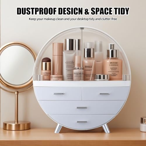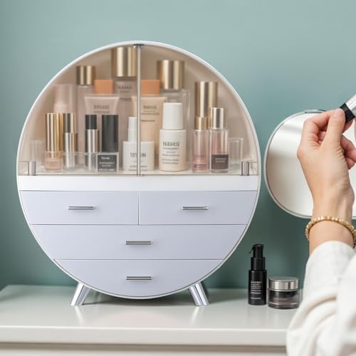 [Dust-Waterproof]: You can place it in the bathroom and bedroom, it will protect your cosmetics from dust and moisture. Decorated with a clear lid and drawers, the storage drawers are well divided to store makeup brushes, lipsticks, eyebrow pencils, foundation sticks, beauty gadgets, necklaces, rings.