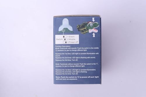 ✔️Light with Continuous Realistic Roaring Mode & Mute Mode – See the product pictures & video and set button as position ‘1’ for only light mode which parents love and button as ‘2’ for roar & light mode which kids love. Then press its jaw 3 times to cycle through solid light, strobe light and off. Set button as ‘3’ to power off and you will not turn light on or hear roaring sound by accident.