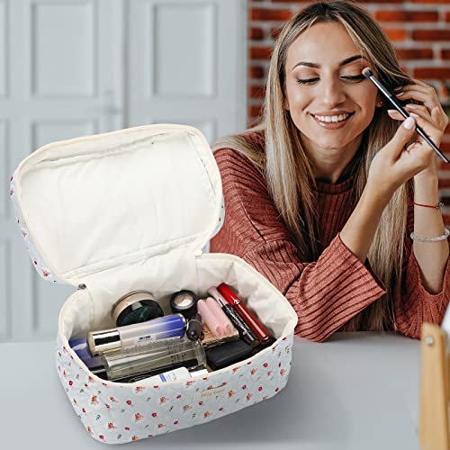 Be the first to review “Cotton Makeup Bag, Quilted Cosmetic Bag with Handle Large Capacity Travel Toiletry Bag for Women Cute Aesthetic Floral Makeup Bag (Blue)”