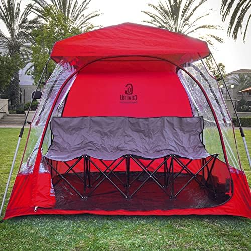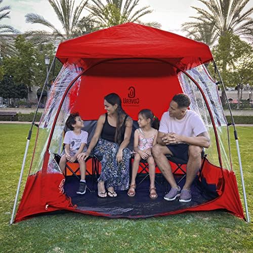 LARGE SIZE – CoverU chair tent with clear sides is designed to seat 2 people comfortably with both people sitting in their own chairs. Cheer on your team or watch a parade together. Other brands can only fit 1 person which makes you feel isolated from the crowd. You can also have 1 adult and 2 small children fit into the tent at the same time.