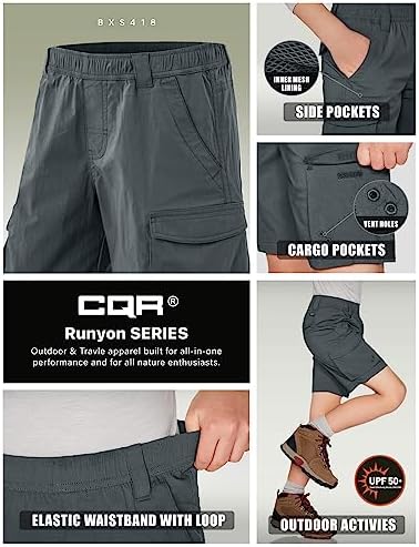 CQR Kids Youth Pull on Cargo Shorts, Outdoor Camping Hiking Shorts, Lightweight Elastic Waist Athletic Short with Pockets