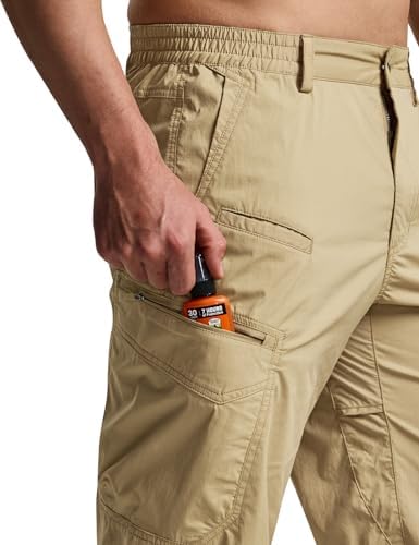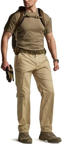 CQR Men’s Cool Dry Tactical Pants, Water Resistant Outdoor Pants, Lightweight Stretch Cargo/Straight Work Hiking Pants