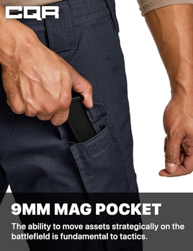 CQR Men’s Flex Ripstop Tactical Pants, Water Resistant Stretch Cargo Pants, Lightweight EDC Hiking Work Pants