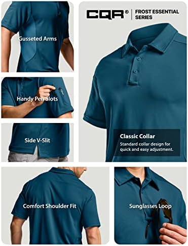 CQR Men’s Polo Shirt, Long and Short Sleeve Tactical Shirts, Dry Fit Lightweight Golf Shirts, Outdoor UPF 50+ Pique Shirt