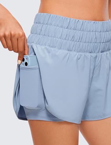 CRZ YOGA 2 in 1 High Waisted Running Shorts for Women 3″ – Split Breathable Athletic Tennis Gym Workout Shorts with Pockets