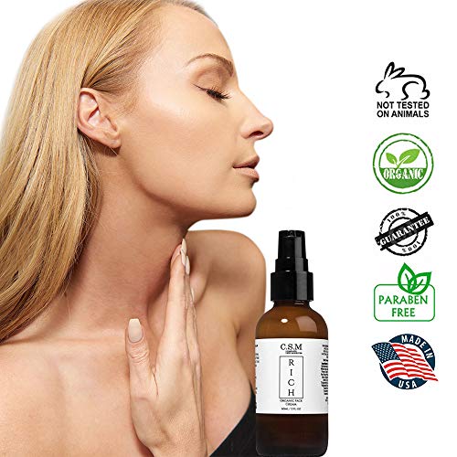 CSM RICH Organic Moisturizing Face and Eye Cream with Vitamin C, B5, Ceramides, Aloe, Chamomile, Comfrey, Lavender – Anti-Aging Natural Skin Care Lotion, Day and Night Cream – Made in the USA