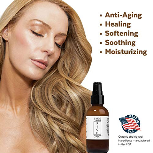 DEEPLY HYDRATES DRY SKIN and absorbs quickly. Moisturizing enough for overnight use to heal rough, dry skin, but light enough for daytime use under your makeup. All C.S.M. anti-aging skincare products are natural and organic. Made in America.