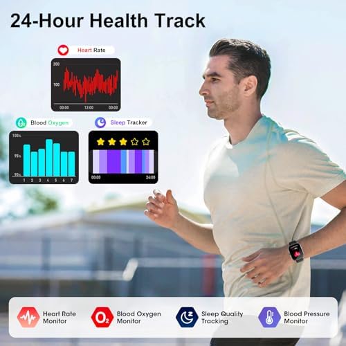 All-day Health Monitoring: The health watches for men is equipped with optimized sensors for precise health data collection.This fitness tracker watch features a heart rate monitor, blood pressure monitor, blood oxygen monitor, and sleep tracker to provide a comprehensive analysis of your health around the clock. Gain valuable insights into your sleep quality, including deep sleep, light sleep, and wakefulness, to help you establish healthy sleep habits.