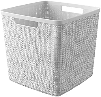 Keep your home organized in style with the Curver Jute Cube decorative plastic storage basket. A stylish storage solution that features the look of handcrafted woven textures in an easy to maintain resin material, the perfect alternative to wicker baskets. This cube-shaped basket makes a great container for multipurpose storage. The open top allows for easy access and is perfect for storing toys, laundry, books and other household supplies. Use it in your child’s playroom, the laundry room or anywhere in the home for endless functional uses.