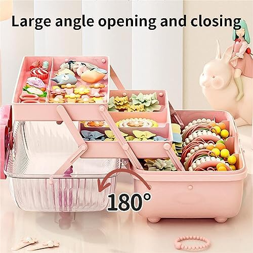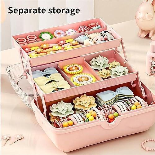 Cute Hair Accessories Organizer 3-Layers Kids Jewelry Storage Box Plastic Hair Accessories holder for Girls (Pink, 10.8 x 5.7 x 5.9 Inch)