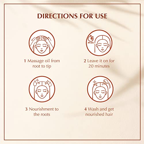 DIRECTION FOR USE: For beautiful, nourished hair, apply this massage oil from your roots to the tips of your hair, and then leave the oil on for 20 minutes to allow the nourishment to penetrate deeply. Afterwards, rinse your hair thoroughly. Enjoy the beautiful, healthy shine of your nourished hair.