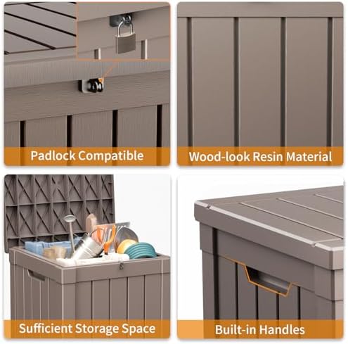 Be the first to review “Deck Box 50 Gallon Outdoor Storage Box with Lockable for Patio Cushions, Outdoor Tools, Gardening Tools, Sports Equipment, Waterproof Resin, Light Brown”