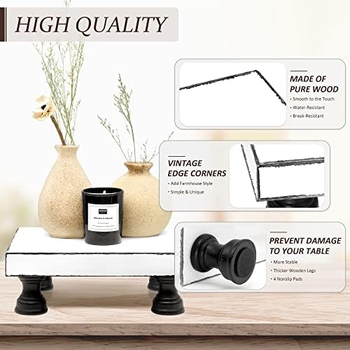 Decorative Wooden Riser for Display : Farmhouse Pedestal Stand for Retro Home Decor and Soap holder for Sink – The Rustic Tray Decor Riser for Kitchen & Bathroom (Black and White)