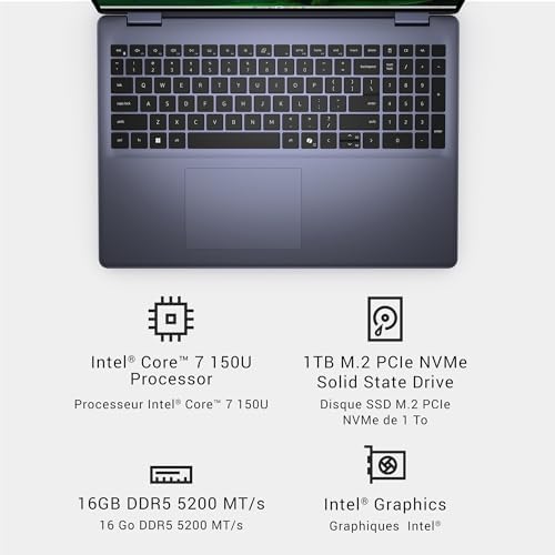 Dell Inspiron 5640 Laptop – 16.0-inch 16:10 FHD+ (1920 x 1200) Display, Intel Core 7-150U Processor, 16GB DDR5 RAM, 1TB SSD, Intel Graphics, Windows 11 Pro, Onsite & Migrate Service – Midnight Blue