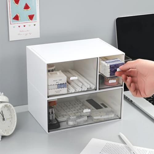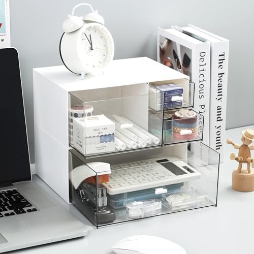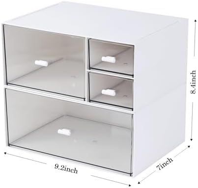 Desk Organizer with 4 Drawers, Makeup Organizer, Desktop Storage Box, Cosmetics Storage Box for nail polish, Lipstick, Brushes, Jewelry, Skincare, Bathroom Organization Boxes(White)