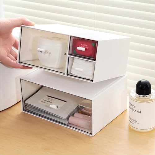 【Deep drawers】Our makeup organizer is built with deep drawers that slide out easily to keep your items dustproof and tidy.