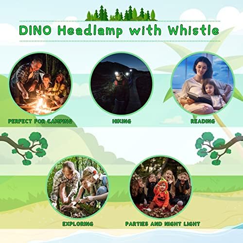 Dinosaur Headlamp with Whistle for Kids Camping Gear – Triceratops Toys Headlight Flashlight for 3 4 5 6 7 8 9 10 Years Old Boys Girls, Perfect for Camping, Hiking, Hunting, Reading and Parties