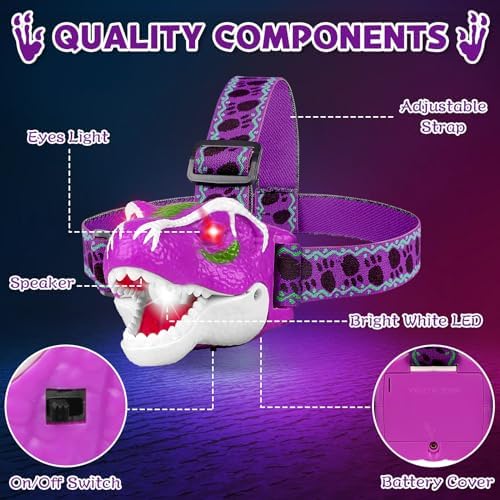 【Perfect Dinosaur Toys Gift】This dinosaur kids flashlight head lamp is the ideal birthday present for boys and girls aged of 3 4 5 6 7 8 9 10 11 12. It is also a wonderful kids gifts in festivals like Halloween, Thanksgiving, Christmas Stocking Stuffers, Easter Basket Stuffers and New Year.