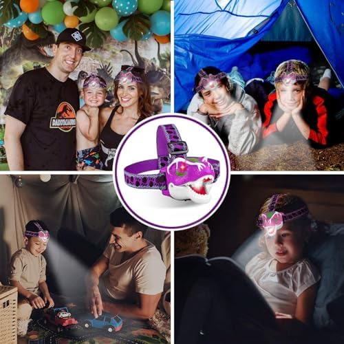 Dinosaur LED Headlamp for Kids T-Rex Toy Kids Flashlights – Dinosaur Toys for Boys Girls Toddlers Camping Gear Outdoor Toys for Kids Birthday Halloween Stocking Stuffers Purple