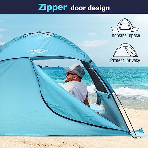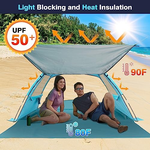 DLUCKY Beach Tent for 2/3-4/5 Person,Anti-UV Portable Sun Shade ShelterUPF 50+,Both Sides Extendable Floor,Extendable Awning,with 2 Ventilating Mesh Windows,Lightweight & Easy Setup.