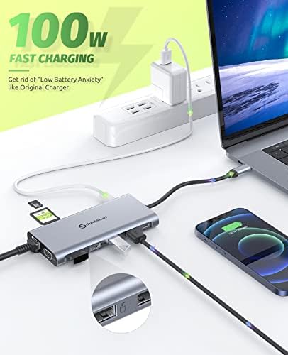 USB-C PD (Power Delivery) charging port supports 100W(20V/5A) power pass through via your laptop power supply or a separate power supply. Reduce charging time by 2-3 times.